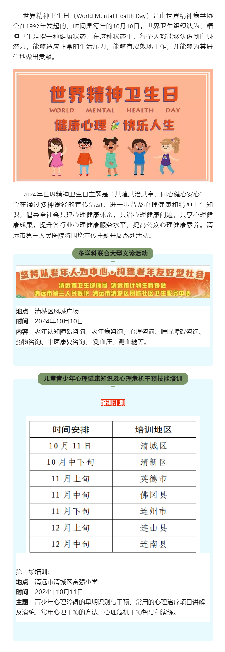 【义诊及培训】世界精神卫生日,守护精神心理健康,我们一直在路上