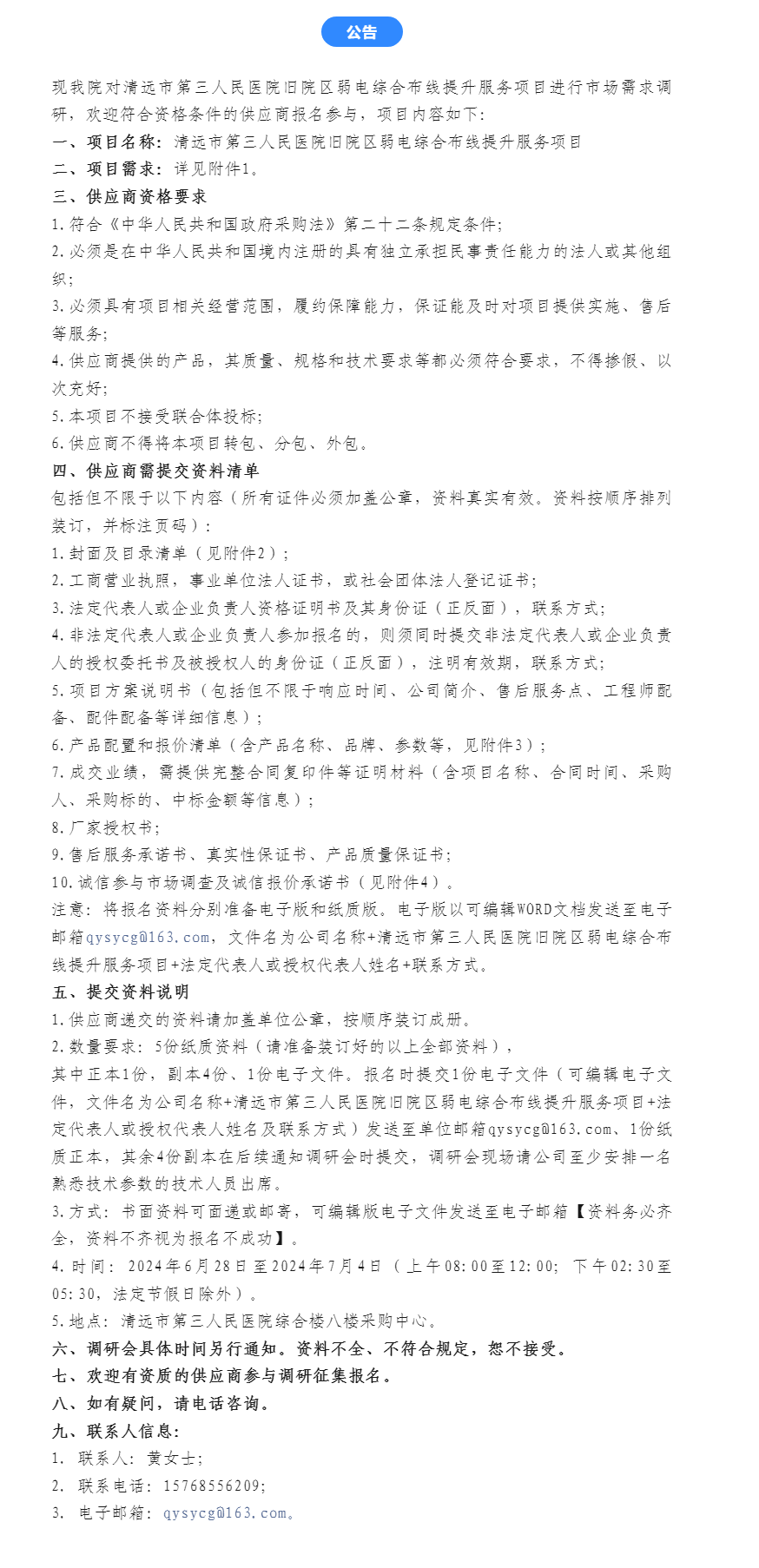 附件1:清远市第三人民医院旧院区弱电综合布线提升服务项目需求.docx